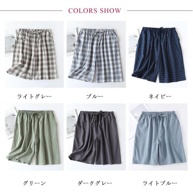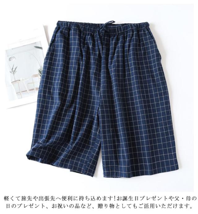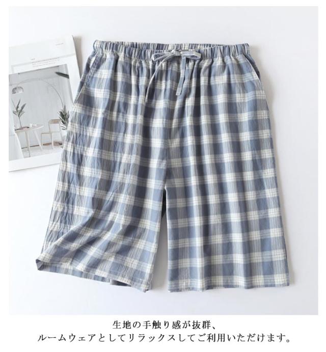 ショートパンツ ルームウェア ズボン 半ズボン コットン メンズ パジャマパンツ リラックス チェック 寝ズボン ハーフパンツ 男性 パンツ ナイトウェア ボトムス 薄手 部屋着 パジャマ パジャマパンツ ウエストゴム 春 夏 ルームパンツ