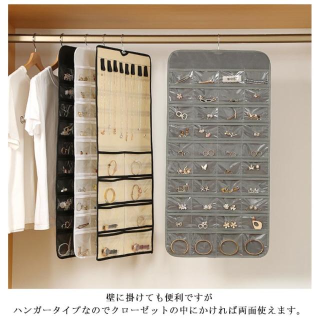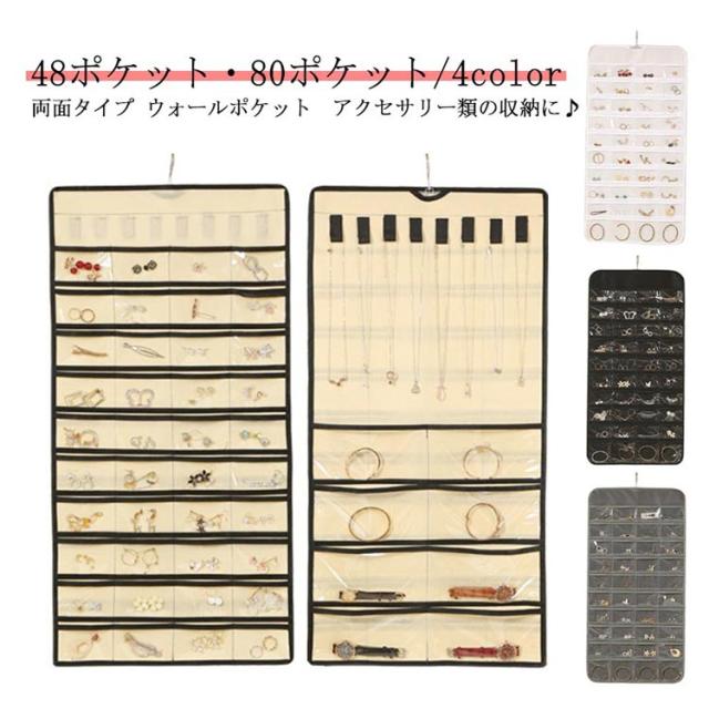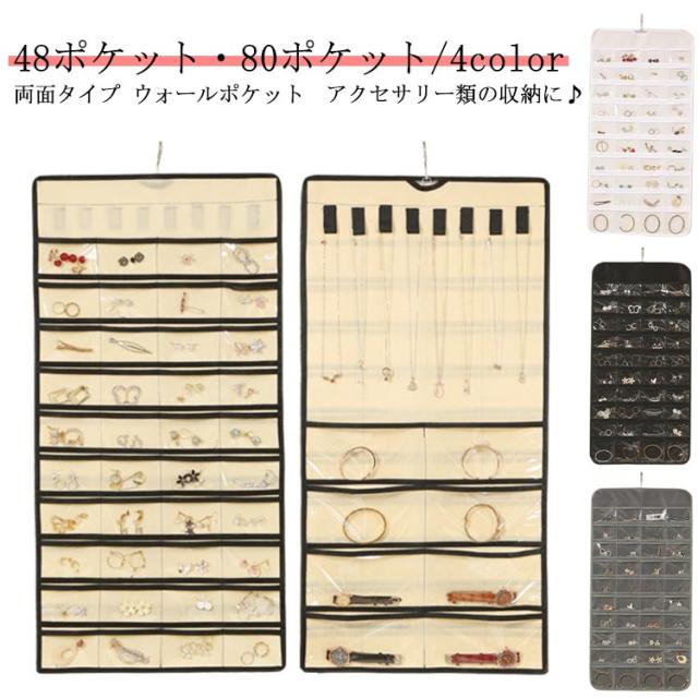 両面収納 アクセサリー収納 ウォールポケット 吊り下げ収納 超大容量 クリア ウォールポケット 透明 吊り下げ 防水 防塵 省スペース 80ポケット 壁掛け式 ポケット ハンガー付き アクセ ジュエリー 小物入れ 雑物整理 クローゼット 収納ポケットハンガー