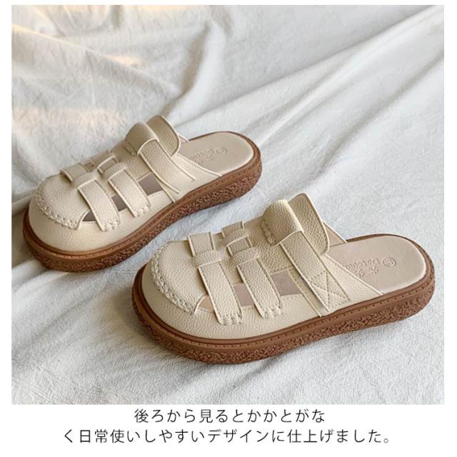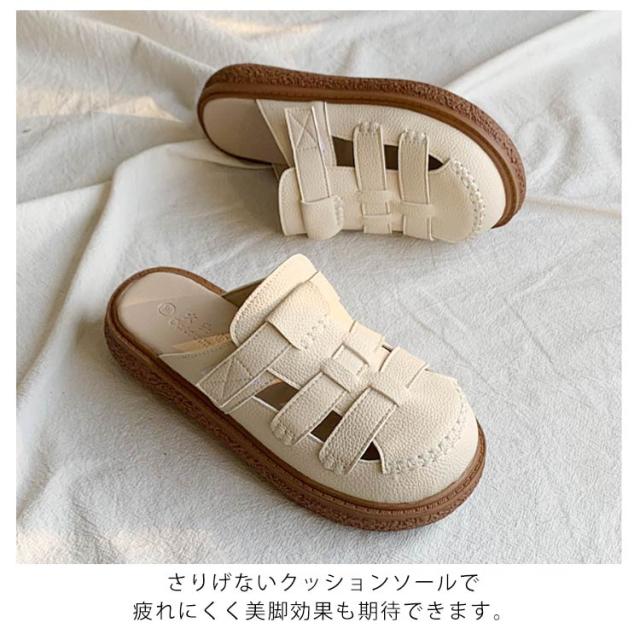 厚底 サンダル メッシュ 編み込み フラットサンダル クロス編み スリッポン 編み込み レディース クッションソール ぺたんこ PUレザー サボ 編み込み 透かし編み ローファー サボサンダル 靴 くつ 履きやすい 歩きやすい スリッパ リラックス ミュール