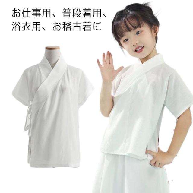 衿付き 着物 男の子 半袖 キッズ 簡単 子供用 襦袢 簡単 一体型 半襦袢 着物 女の子 子供用 初心者 インナー 和装 浴衣 Tシャツ 下着 肌着 速乾 快適 着物下 白 ホワイト 110 120 130 140 150