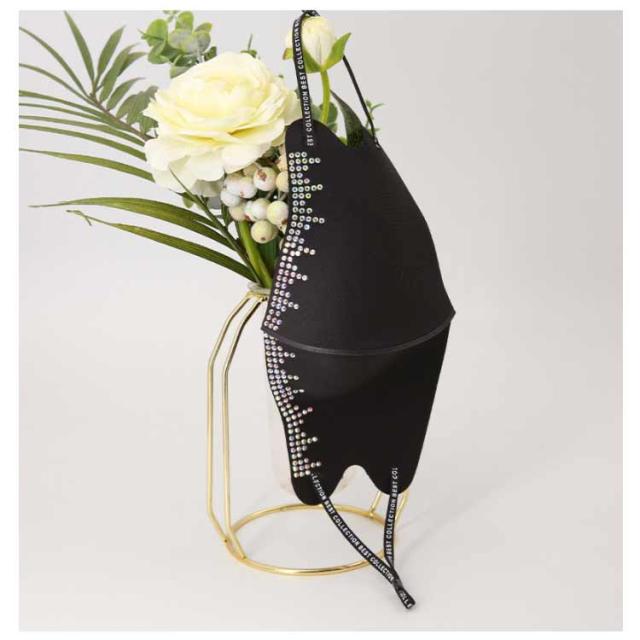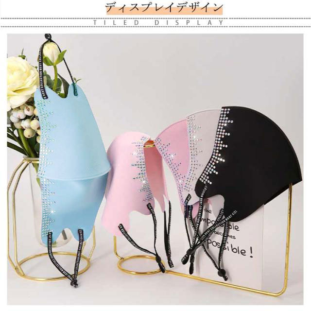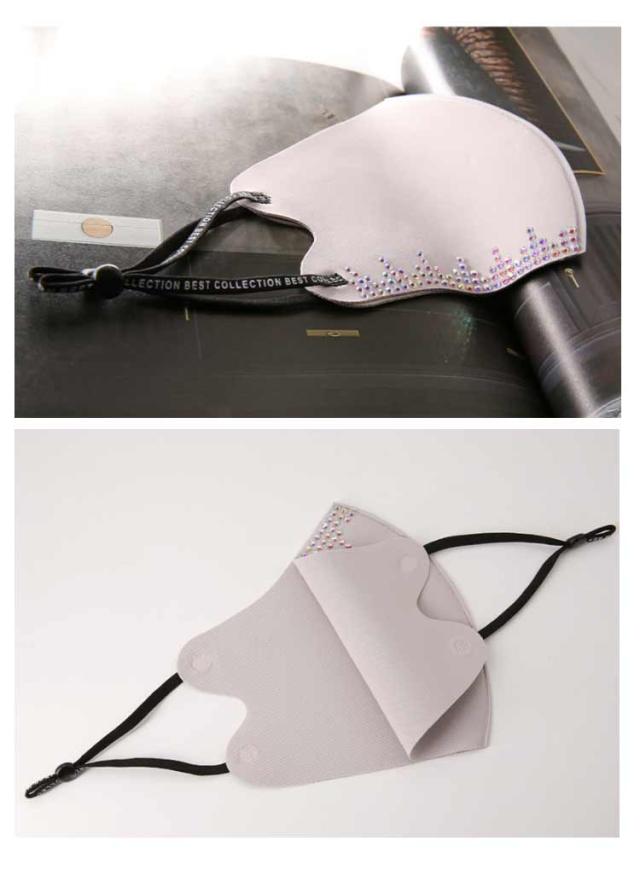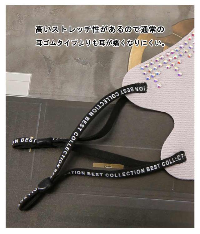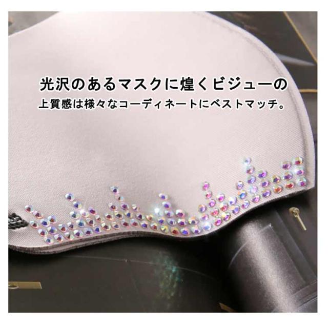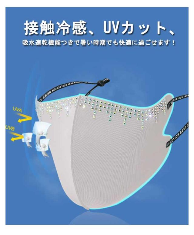 | マスクは3D立体構造で、どんなフェイスラインにもぴったりフィットします。 顔の凹凸にしっかり密着したシルエットで、小顔効果も期待できます。 高いストレッチ性があるので通常の耳ゴムタイプよりも耳が痛くなりにくい。 光沢のあるマスクに煌くビジューの上質感は様々なコーディネートにベストマッチ。 接触冷感、UVカット、吸水速乾機能つきで暑い時期でも快適に過ごせます! | |