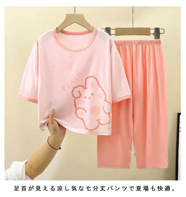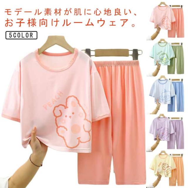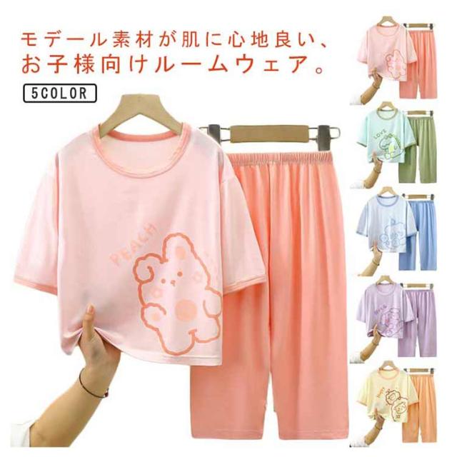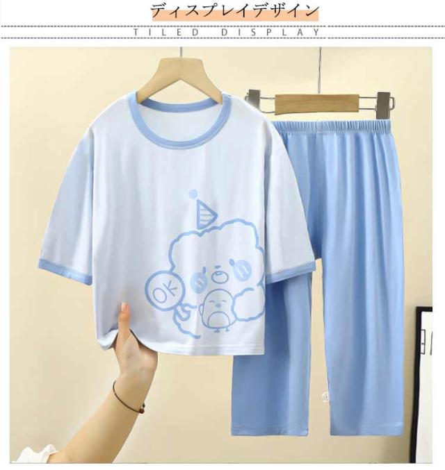 パジャマ キッズ 七分袖 子供服 ルームウェア 寝巻き ベビー セットアップ 夏用 寝間着 クロップドパンツ 薄手 涼しい 上下セット パジャマ ナイトウェア 肌着 部屋着 ルームウェア かわいい 上下セット ブルー ピンク グリーン 薄手