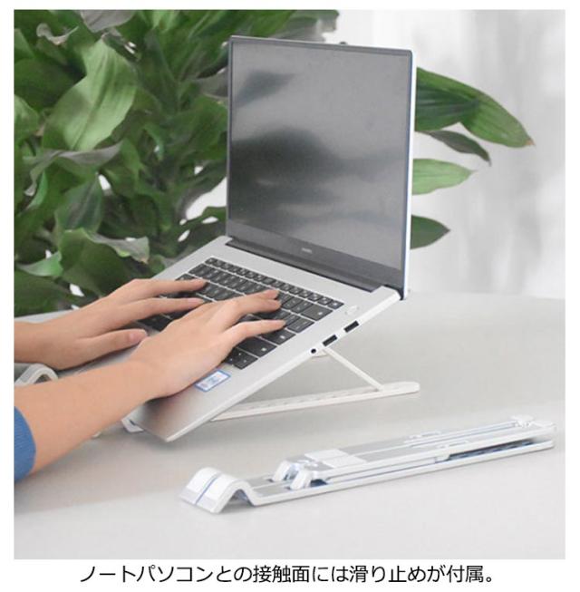 | ご自宅でのデスクワークにおすすめな折りたたみノートパソコンスタンド。 10段階の角度調整でノートパソコンに傾斜をつけることで姿勢改善が可能。 ABS樹脂製で軽く、コンパクトに収納。 ノートパソコンとの接触面には滑り止めが付属。 空間を確保してノートパソコン温度上昇による熱暴走を防止。 タブレットスタンド、ブックスタンド、楽譜置きなどにもご利用できます。 | |