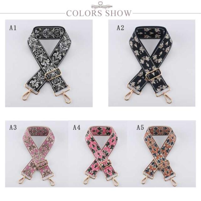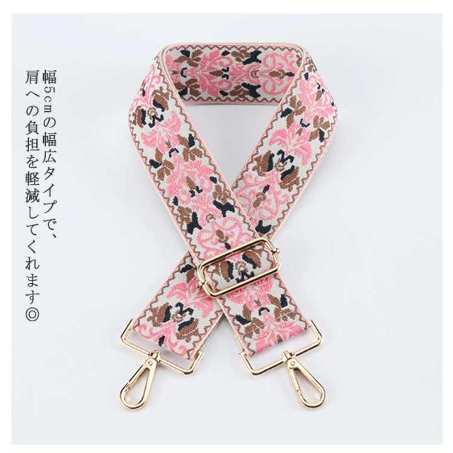 幅広 幅5cm ショルダーベルト ショルダーベルト 単品 ショルダー紐 ショルダーストラップ 選べる金具 刺しゅう 太め カバン用 バッグ用 ベルト 斜めがけ バッグストラップ 付け替え ショルダーのみ 刺繍 おしゃれ 花柄 フラワー エスニック モード フェミニン