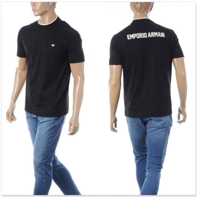 エンポリオアルマーニ EMPORIO ARMANI Tシャツ メンズ 3D1T73 1JPZZ 半袖 クルーネック ブラック ロゴ プリント コットン カジュアル キレイめ 人気 ブランド