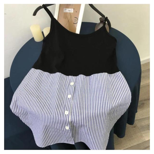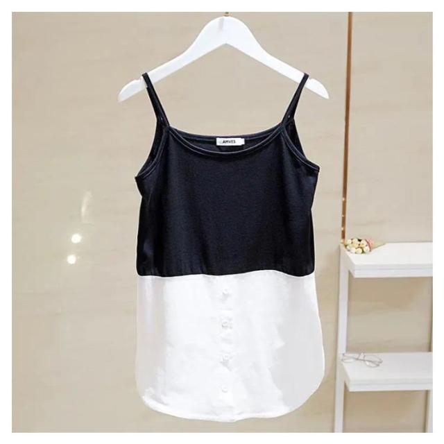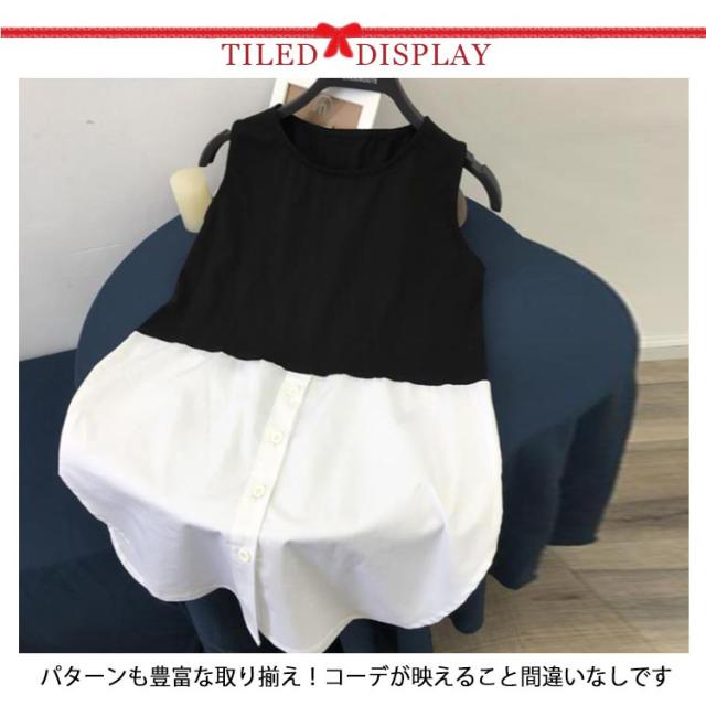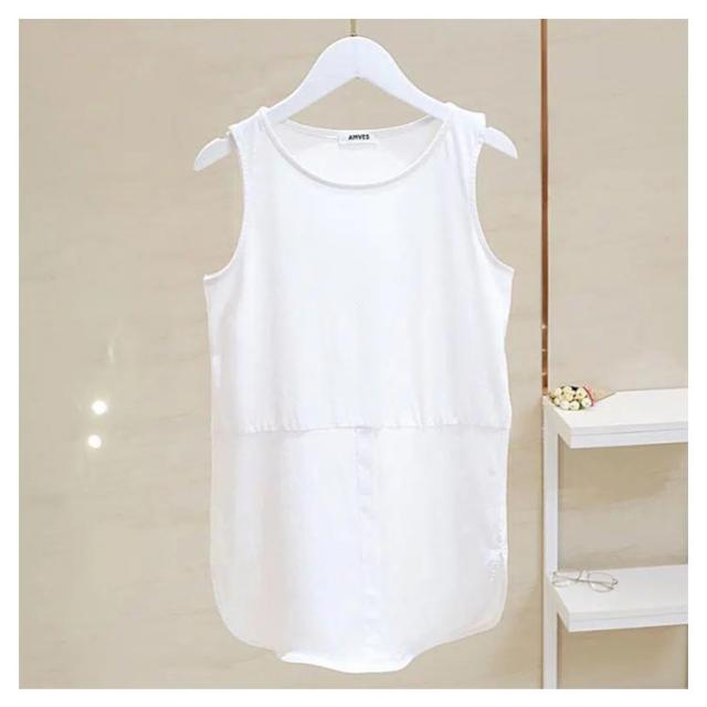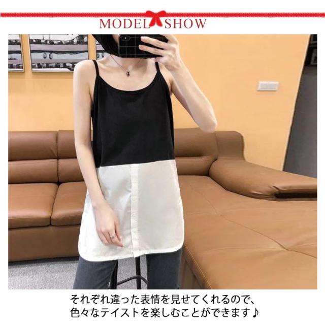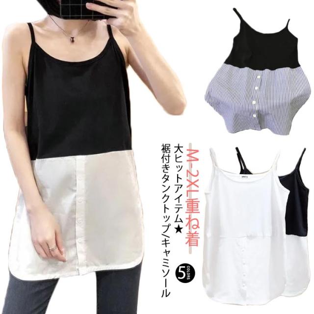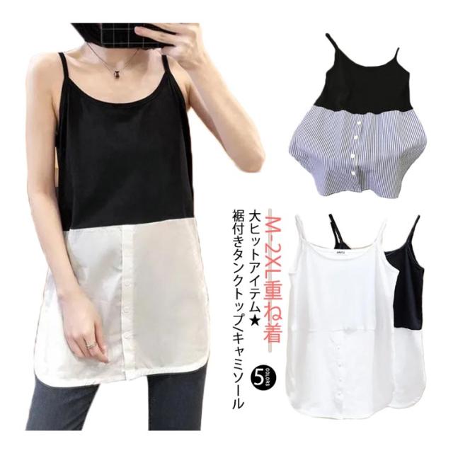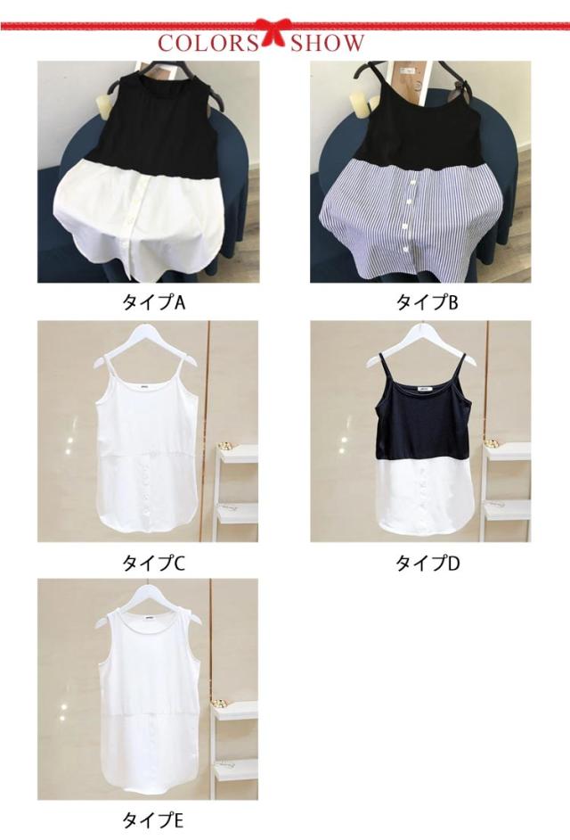 ロング レイヤード ノースリーブ 春 ラウンドヘム 重ね着 レイヤード タンクトップ タンク 夏 つけ裾 トップス シャツ レディース インナー シャツ シフォン 付け裾 母の日 ストライプ お尻が隠れる 体型カバー M L XL 2XL