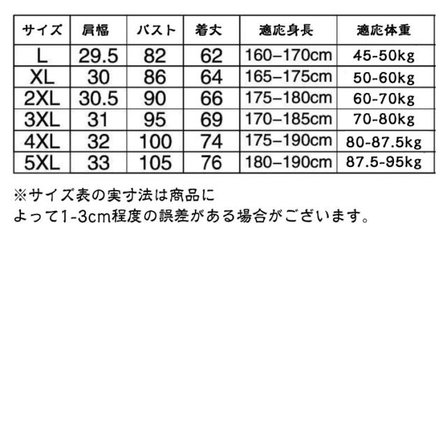 | サイズ | L XL 2XL 3XL 4XL 5XL |