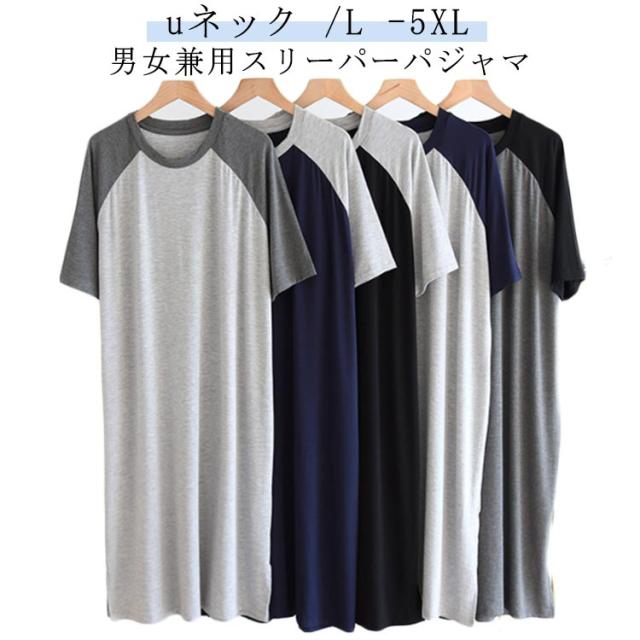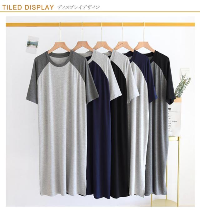 uネック メンズ パジャマ スリーパー メンズ ワンピース ネグリジェ パジャマ 男女兼用スリーパーパジャマ スリーパー半袖 綿メンズ紳士シャツワンピース 男女兼用スリーパーパジャマ ホテルパジャマ グレー ネイビー ブラック