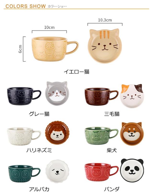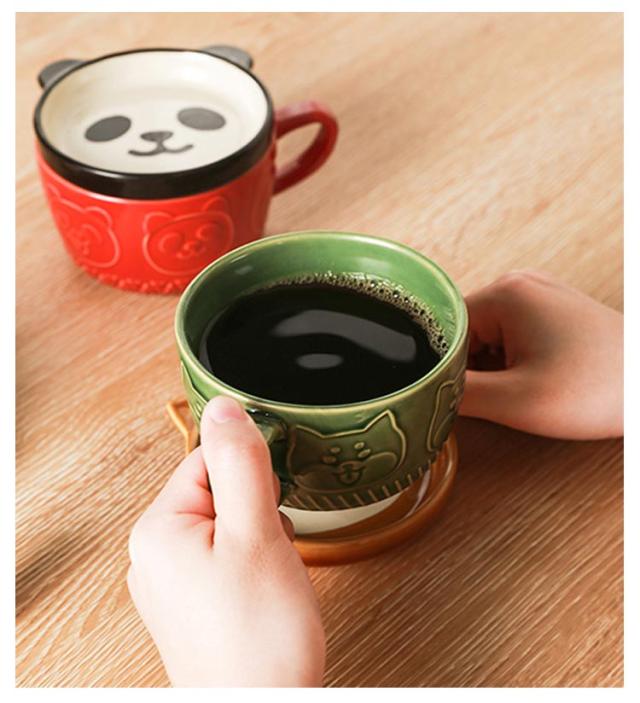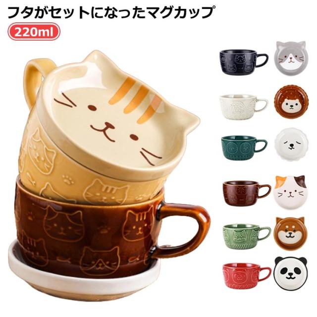 珈琲カップ ネコ柄 コップ 陶器 陶器 コーヒーカップ 動物 マグカップ おしゃれ かわいい アニマル セット 猫 柴犬 おしゃれ マグカップ 珈琲カップ 食器 蓋つき 磁器 雑貨 電子レンジOK 食洗機対応 茶碗 マグ パンダ柄 猫グッズ フタ付き 女性 子供 贈り物