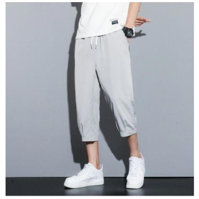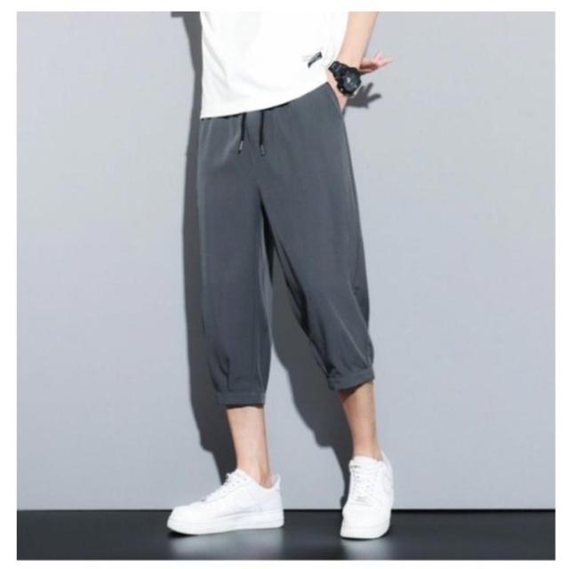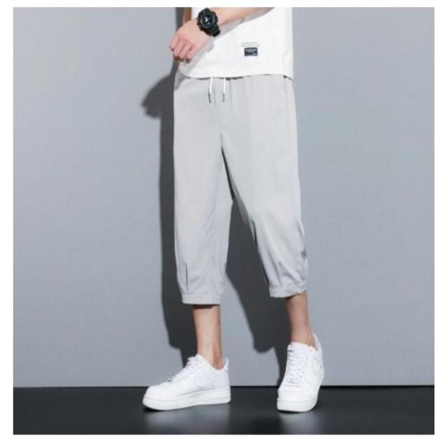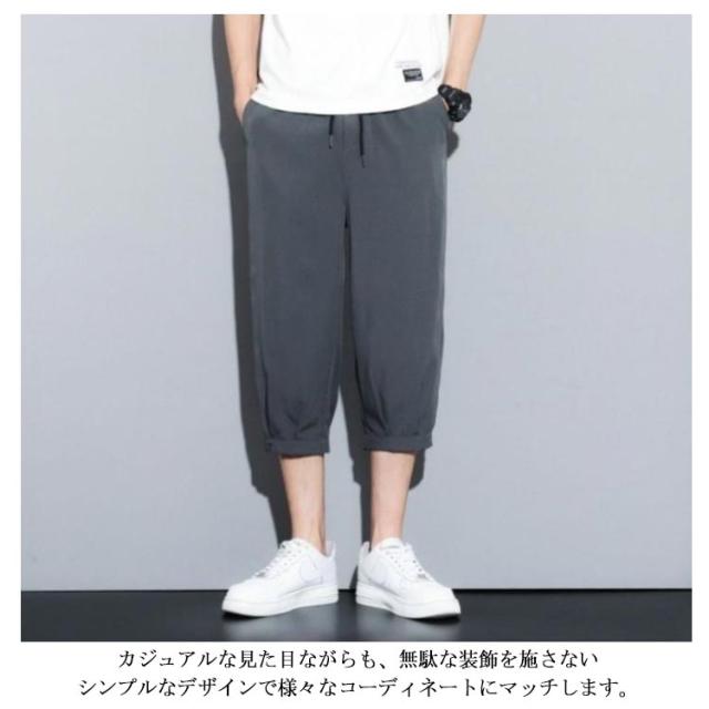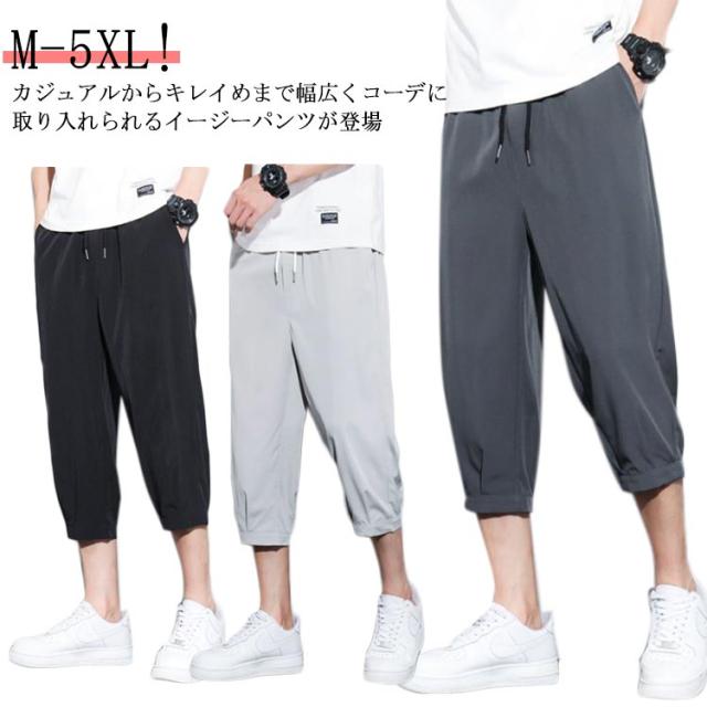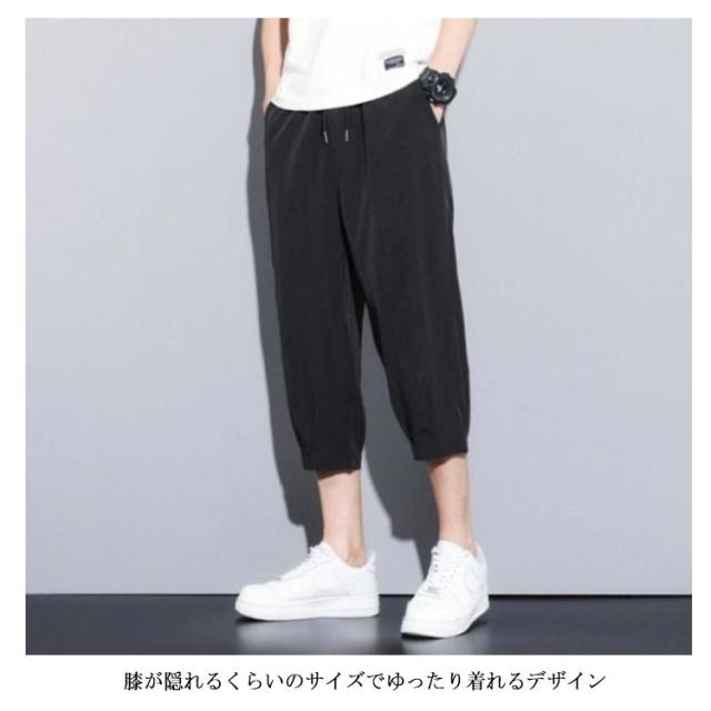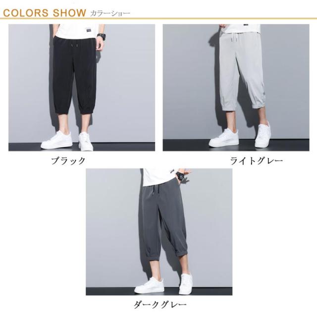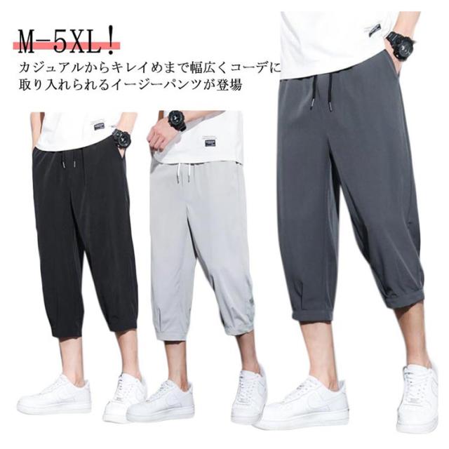 アイスシルク 涼感 7分丈 リラックス パンツ メンズパンツ イージーパンツ クロップドパンツ ズボン 冷感 接触冷感 スリム ひんやり 涼しい 50代 ストレッチパンツ 七分丈 ウェストゴム チノパン ワイドパンツ 30代 40代 クロップドパンツ ボトムス 春 夏 スポーツ