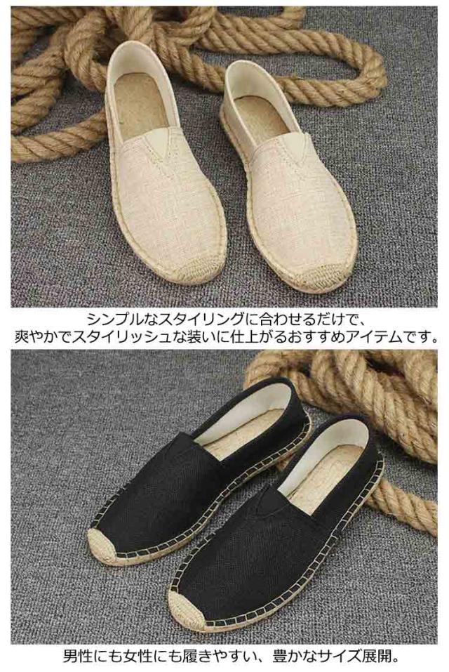 フラットシューズ 歩きやすい レディース メンズ スリッポン 綿麻 ナチュラル 旅行 散歩 軽い 歩きやすい ペタンコシューズ 大人カジュアル 麻 リネン キャンバス エスパドリーユ おしゃれ 無地 軽量 リゾート 海 送料無料