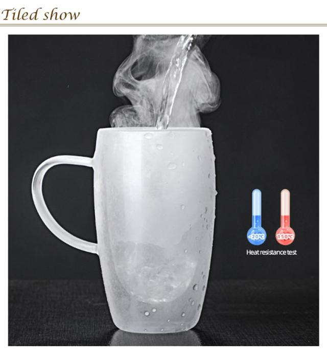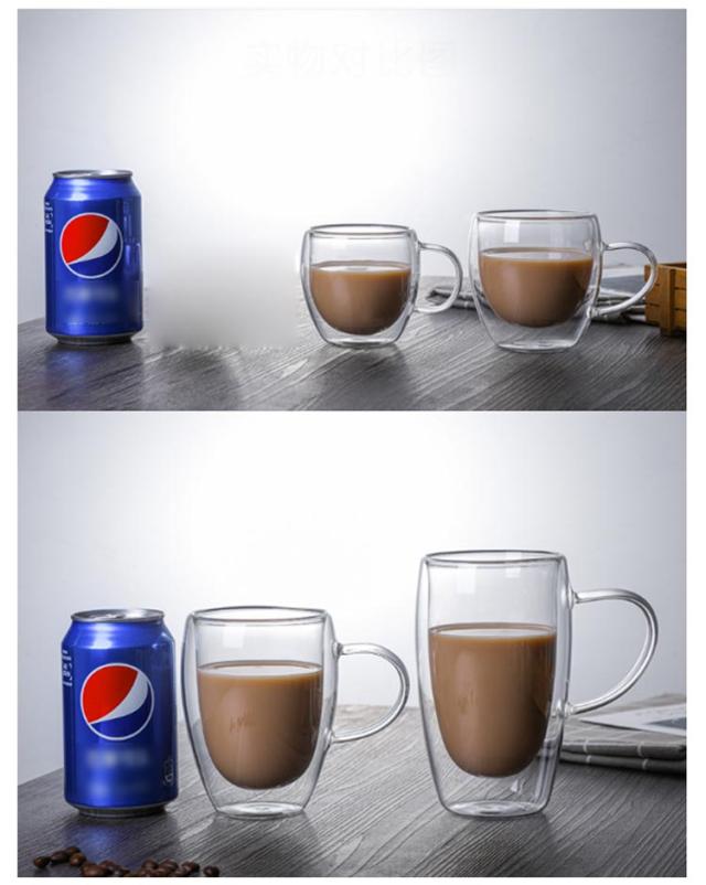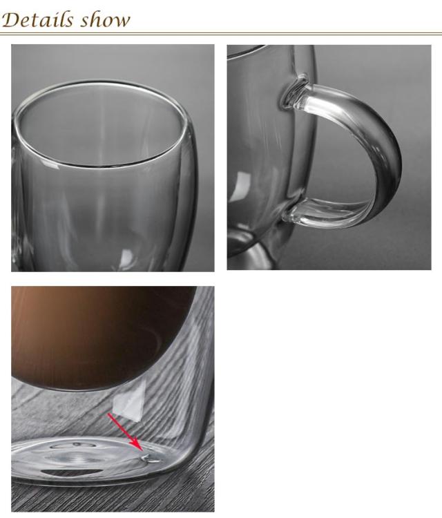 | 二重グラスマッグカップ2個セット。 2重耐熱ガラスで作られているので熱いものは熱く、冷たいものは冷たく保つことが出来、どの季節どのシーンでも活躍します。 ハンドルつき、耐熱ガラス製マグのお洒落さはそのままに「持った時の熱さ」を解消しています。 お茶、コーヒー、ミルク、飲酒、飲料などホットでもアイスでもお楽しみ頂けます!家族と友達へのプレゼントにも特にお勧め! | |