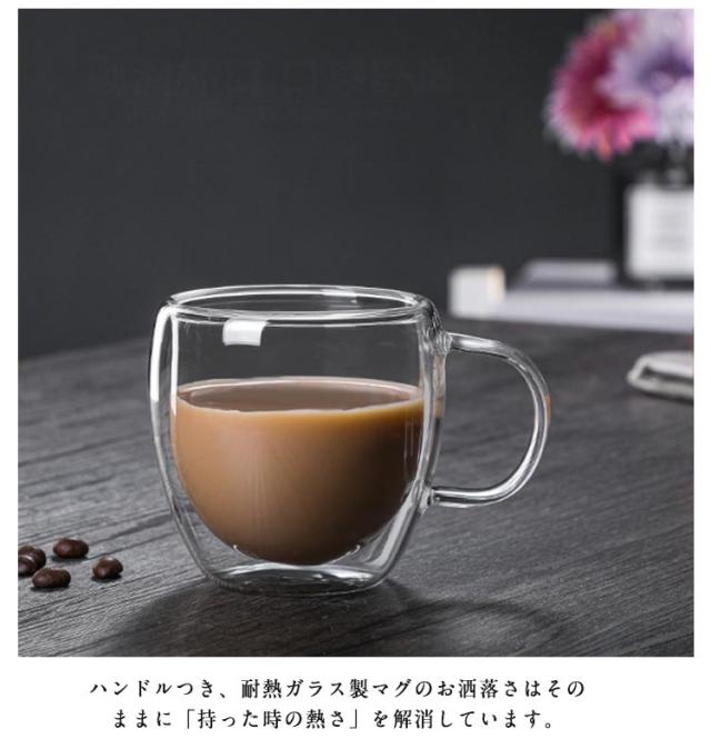 カップ 取っ手付き コーヒーカップ 耐熱ガラス 220ml ダブルウォールグラス ガラスカップ 保冷 二重グラス 保温 保冷 ティーカップ おしゃれ 保温 二重グラス 結露しない 北欧 食器 洗いやすい 二重構造 250ml 350ml