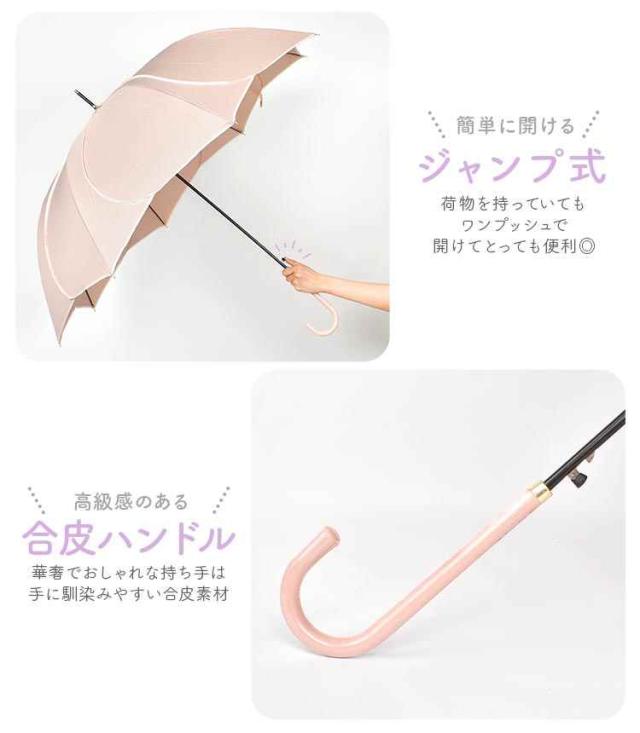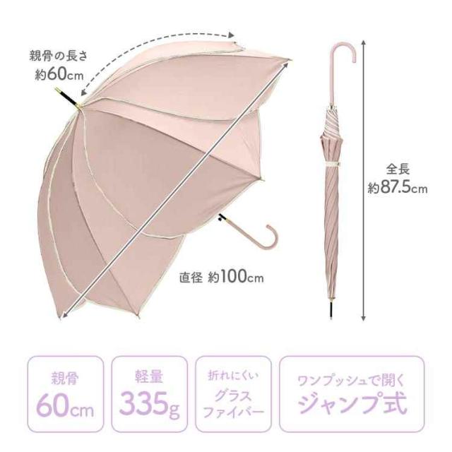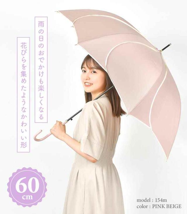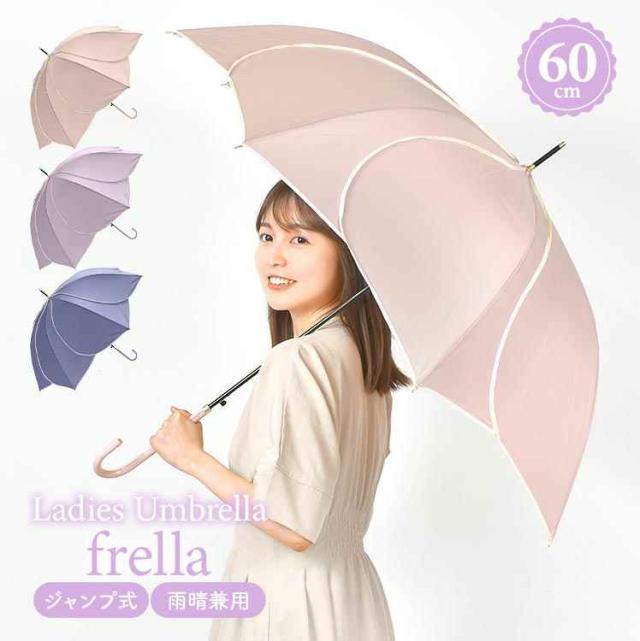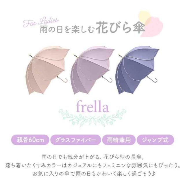 傘 花びら 型 60センチ レディース 女性 女子 フレラ frella 花型 花形 上品 かわいい おしゃれ 大人 ジャンプ傘 ワンタッチ お花型 雨傘 長傘 はなびら グラスファイバー 丈夫 強風 軽い UVカット 晴雨兼用 シンプル 無地 フラワー ピンクベージュ パープル バイオレット