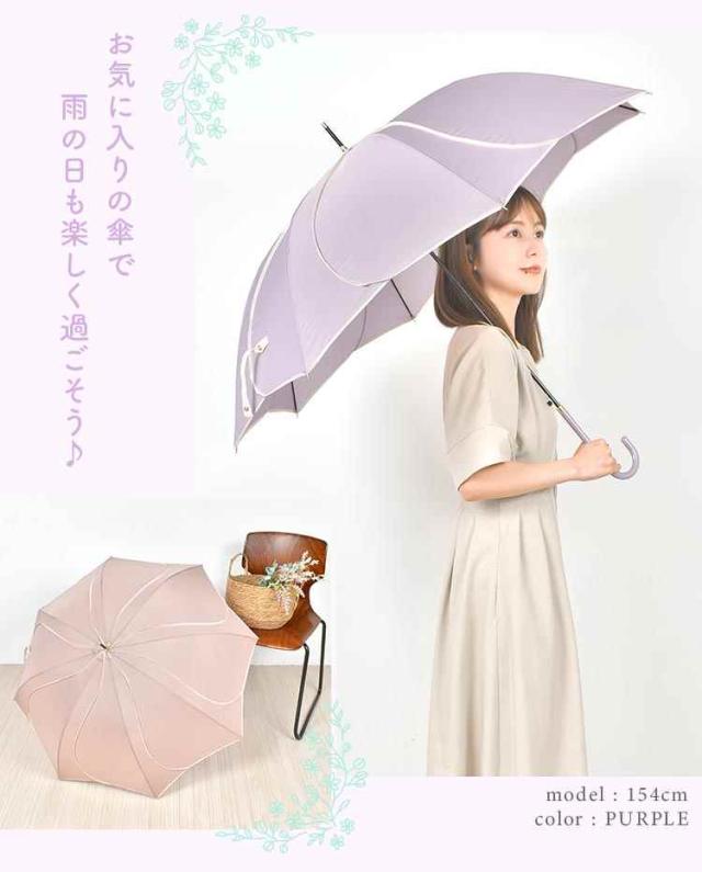 雨の日でも気分が上がる花びら型の長傘。落ち着いたくすみカラーはカジュアルにもフェミニンな雰囲気にもぴったりです。ワンタッチで開ける便利なジャンプ傘で、親骨には軽くて丈夫なグラスファイバー骨を使用。UVカット効果もあるので日傘としての使用もできます◎キッズ用もあるので親子で揃えて使うのもおすすめです。