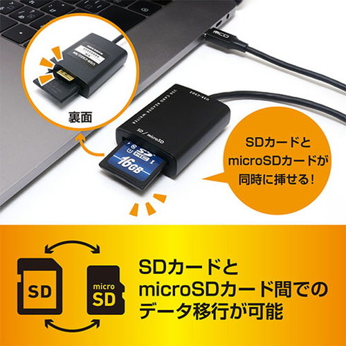 MCO SD microSDカードリーダ Type-C 70cm USR-CSD2/BK パソコン パソコン周辺機器 カードリーダー(代引不可)