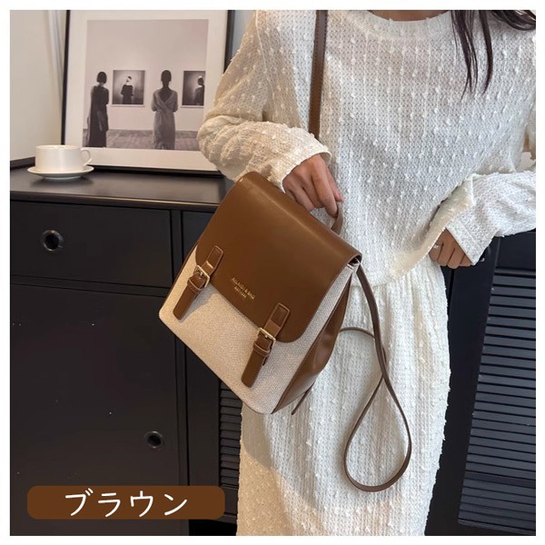 ショルダーバッグ レディース スクエア 四角 バックパック 斜めがけ レトロ風 おしゃれ トートバッグ 3ways 合皮 軽い カジュアル 大容量 通勤 通学 軽量 ママ 大人 仕事 学生 塾 お出かけ デート 鞄 カバン ベージュ ブラック ブラウン 女性 プレゼント ギフト df380m4zu