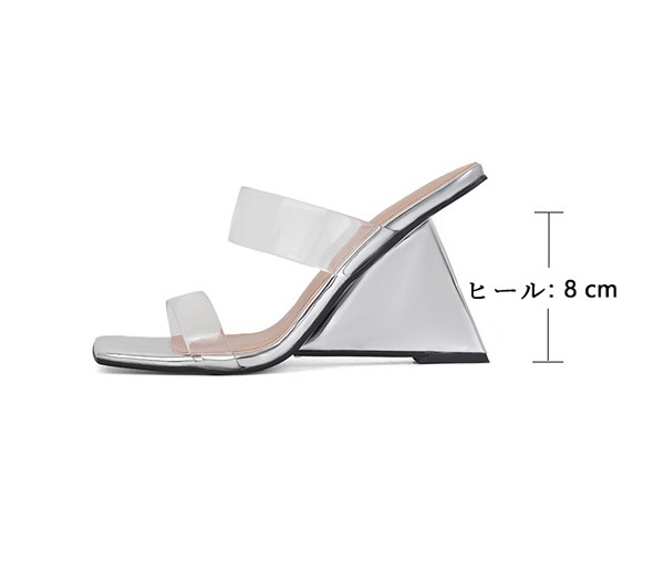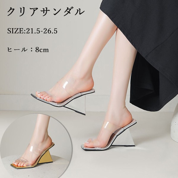 リアミュール クリア サンダル ヒール 8cm ウェッジソール 厚底 ミュールサンダル パーティー 結婚式 美脚 ミュール サボサンダル レディース サボ クリアサンダル 夏 疲れない 痛くない ハイヒール 靴 おしゃれ パーティー 女子会 通勤 日常着用ja152zbzbzu