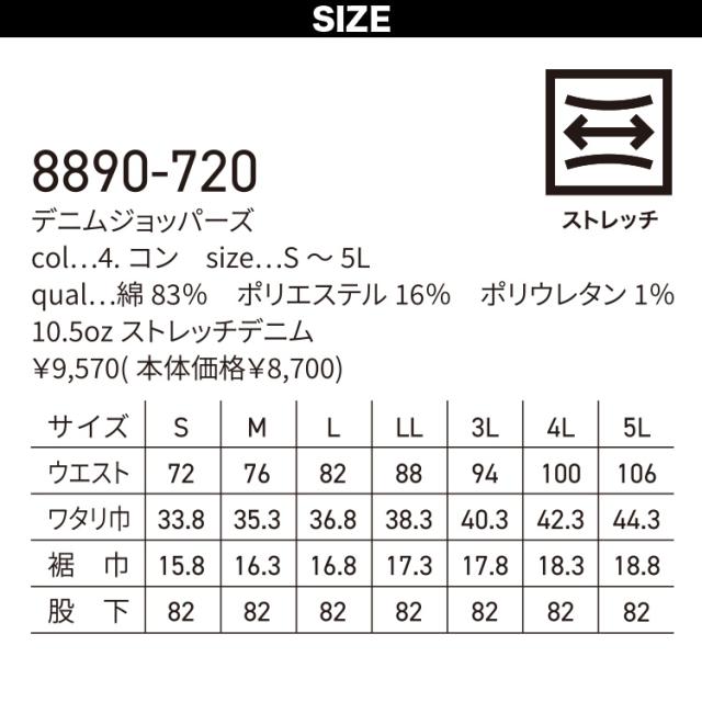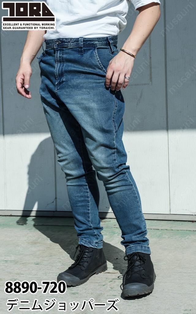 2024年寅壱新作 デニムジョッパーズ ストレッチ オールシーズン 8890-720 乗馬ズボン風 作業着 作業服 春夏 サマーデニム かっこいい おしゃれ メンズ