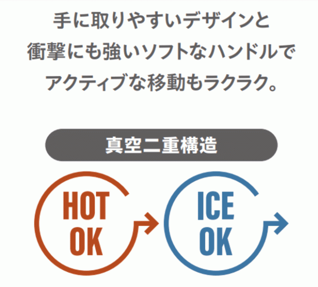 真空二重構造のしっかりとした保温・保冷効果で、