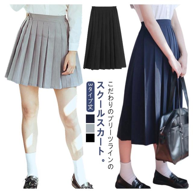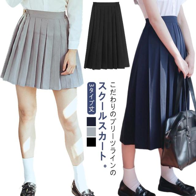 3タイプ丈 プリーツスカート セーラー服 制服 制服 学生服 ミニ丈 膝丈 ロング丈 サイドゴム 高校生 フォーマル スカート aライン 女子高生 中学 高校 通学 仮装 中学生 イベント スクールスカート 無地 JK スクール制服 コスプレ 入学 大きいサイズ グレー 黒
