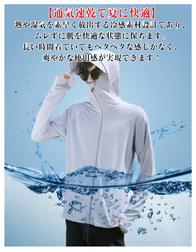 uvカット パーカー メンズ レディース ツバ 指穴 長袖 ラッシュガード ラッシュパーカー 涼感 接触冷感 UPF50+ 薄手 速乾 軽量 通気性 紫外線対策 日焼け防止服 男女兼用 夏服 ード付き アウトドア 海 釣り ウォーキング uvパーカー