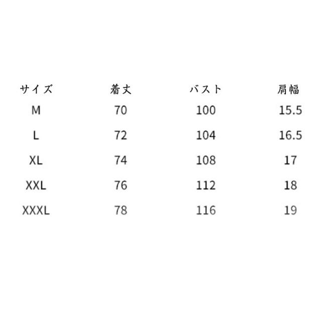 | サイズについての説明 | サイズ 着丈 バスト 肩幅 ※サイズ表の実寸法は商品によって1-3cm程度の誤差がある場合がございます。 |