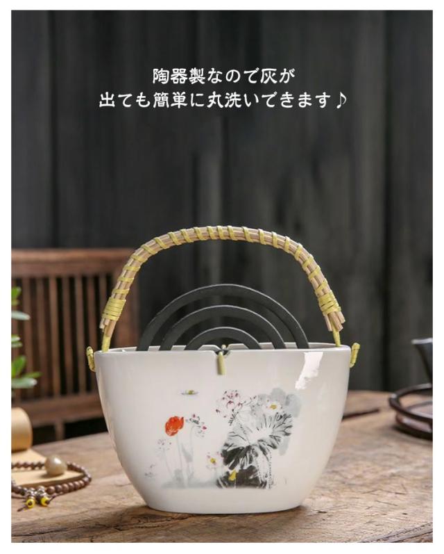 | 縦置き型だからスリムで場所を取らない蚊取り線香ホルダー。 使用時はもちらん、冬など使用しない時期もインテリアとしてお部屋にそのまま飾ってもかわいい! 陶器製なので灰が出ても簡単に丸洗いできます♪ | |