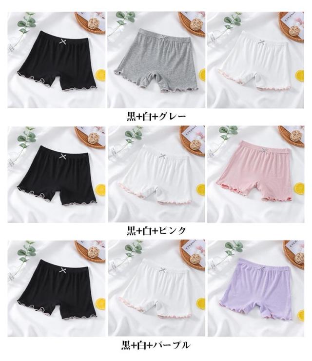 3枚セット 女の子 スパッツ 3分丈 オーバーパンツ キッズ 子供 下着 ショーツ インナーウエア ジュニア 子ども かわいい オーバーパンツ キッズ ペチパンツ インナーパンツ 幼稚園 保育園 小学生 ペチコート アンダーパンツ 通学 通園 フリル 裾