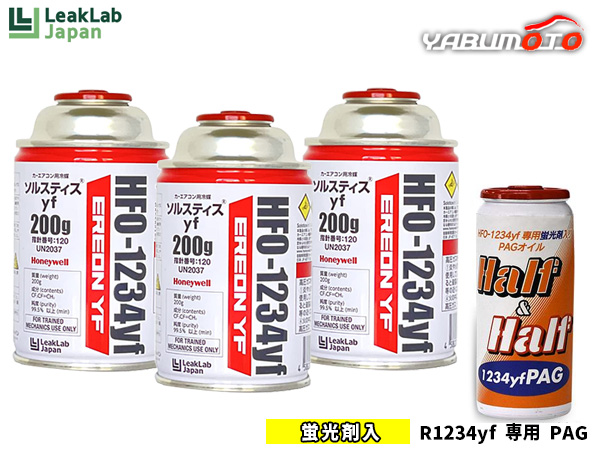 エアコンガス 交換セット リークラボジャパン クーラーガス HFO-1234YF 3本 R-1234yf R1234yf 蛍光剤入オイル PAG 79374 1本 送料無料