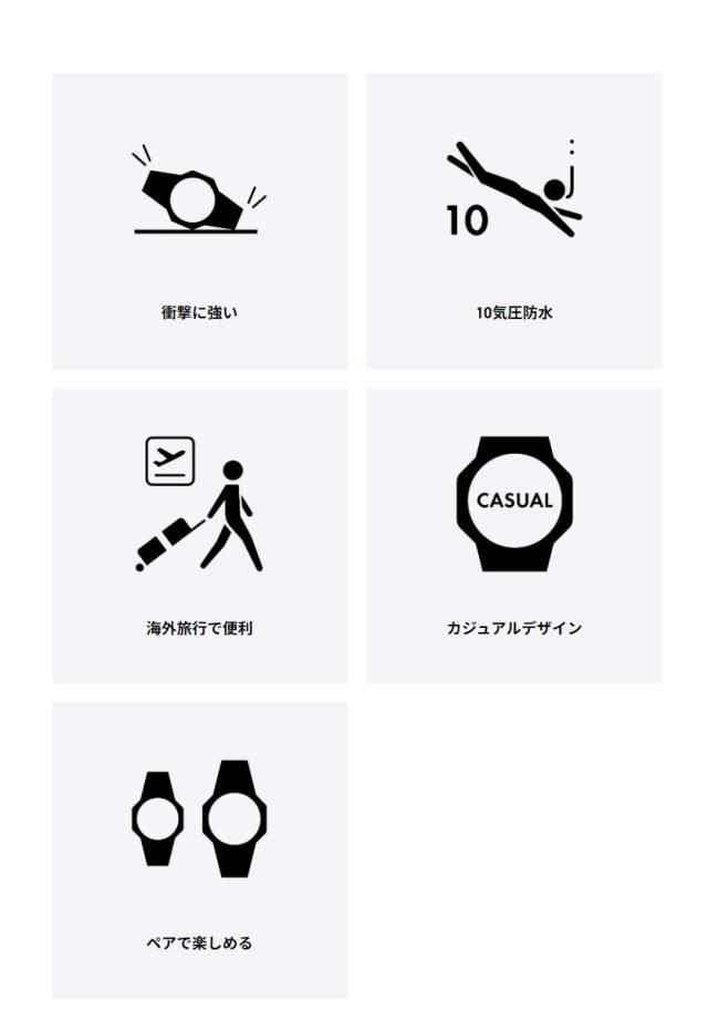 ※工場出荷時点に時計の機能や、性能をチェックするためのモニター電池が内蔵されているため、取扱説明書などに記載されている電池寿命に満たない場合があります。