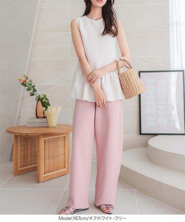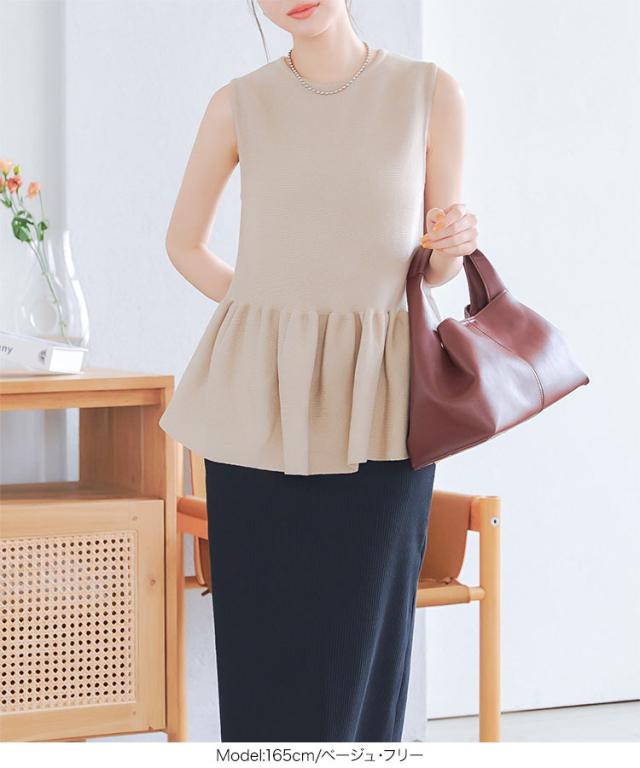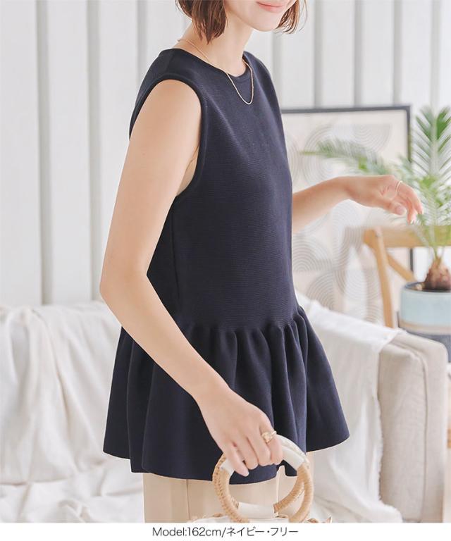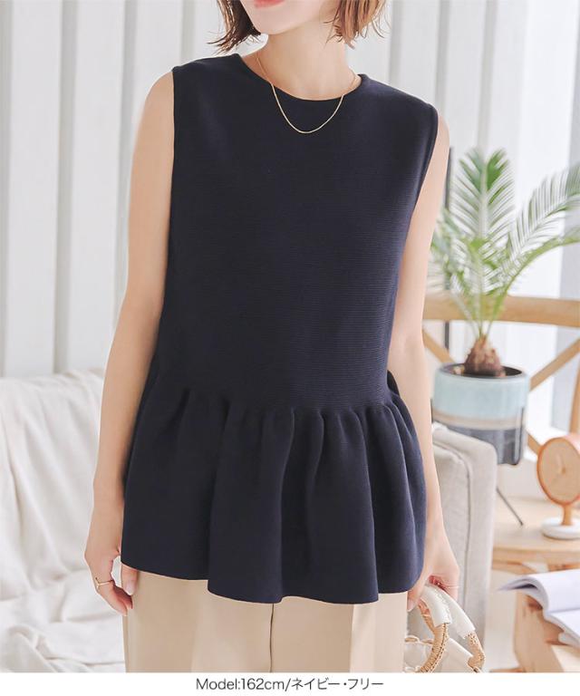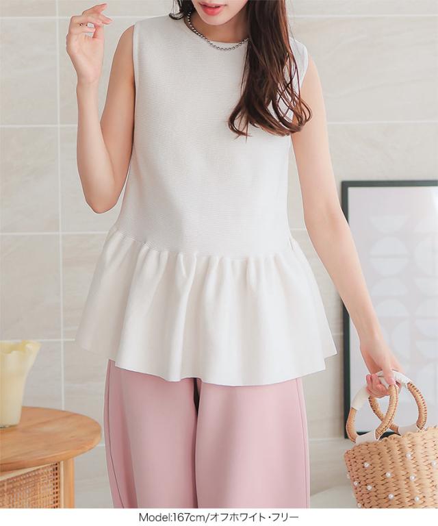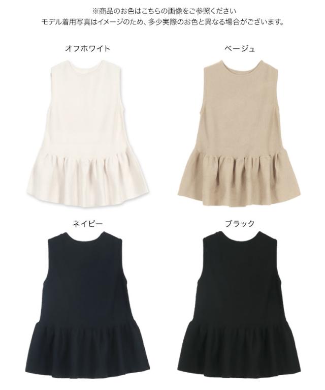 春新作 クルーネックペプラムベストトップス C7180 入荷済 レディース 20代 30代 40代 クルーネック ペプラム ニット ベスト ベージュ 黒 ブラック ネイビー 白 オフホワイト フェミニン トップス