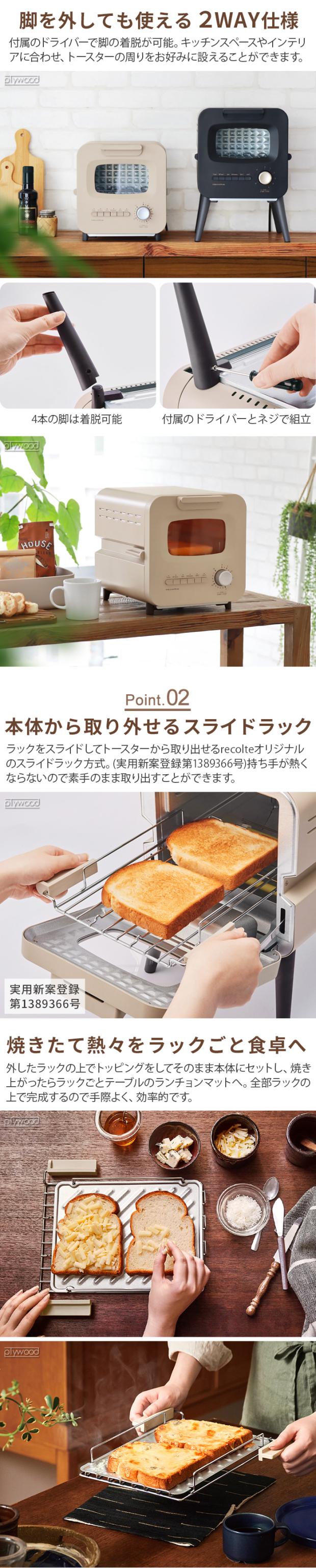 数量限定ブレッドBOX付★ トースター 2枚 オーブン おしゃれ レコルト スライドラックトースター recolte SlideRackToaster RSR-2 シンプル 小型 かわいい コンパクト 遠赤外線 朝食 トースト おすすめ 新生活 一人暮らし 家電 ギフト 結婚祝い 送料無料