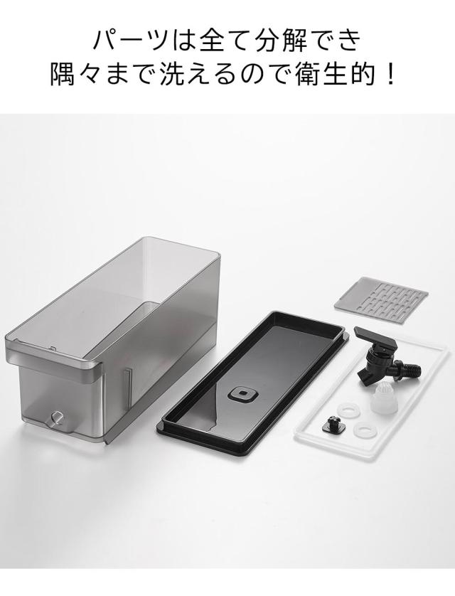 | 容器:メタクリルスチレン 蓋・仕切り板・蛇口・キャップ:ポリプロピレン パッキン・バルブ:シリコーン レバー:ABS樹脂 蛇口バネ:ステンレス鋼 |