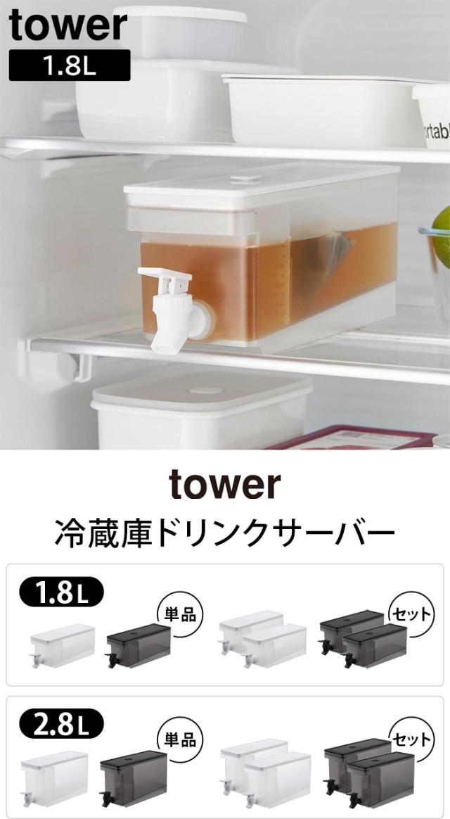 タワー 山崎実業 tower 冷蔵庫ドリンクサーバー 1.8L 2個セット YAMAZAKI 山実 冷水筒 ピッチャー クールポット 仕切りつき レバー 水出し ウォーターサーバー 衛生的 取っ手付き バルブ 分解可能 キッチン 丸洗い【P5倍】