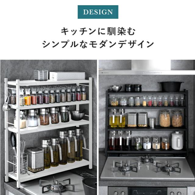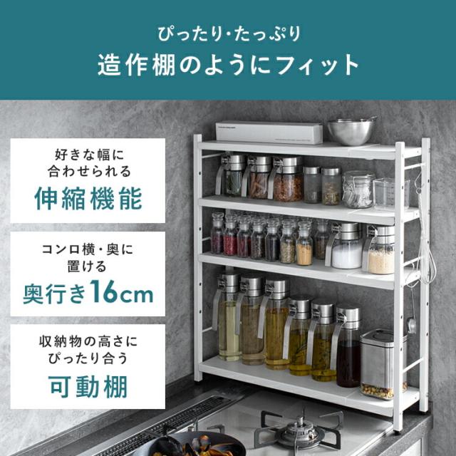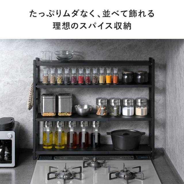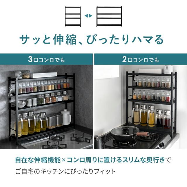 伸縮 スパイス棚 スパイス収納 スパイスラック 調味料 コンロラック 収納 キッチン収納 可動棚 キッチン雑貨 シンプル キッチンラック 収納グッズ 伸縮機能