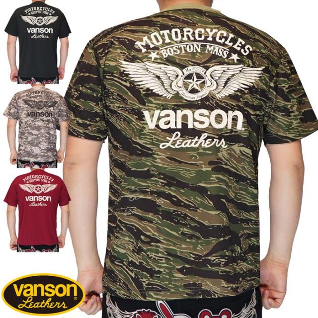 VANSON バンソン ドライTシャツ 半袖 メンズ ドライ生地 吸汗速乾 UVカット フライングスター NVST-2324