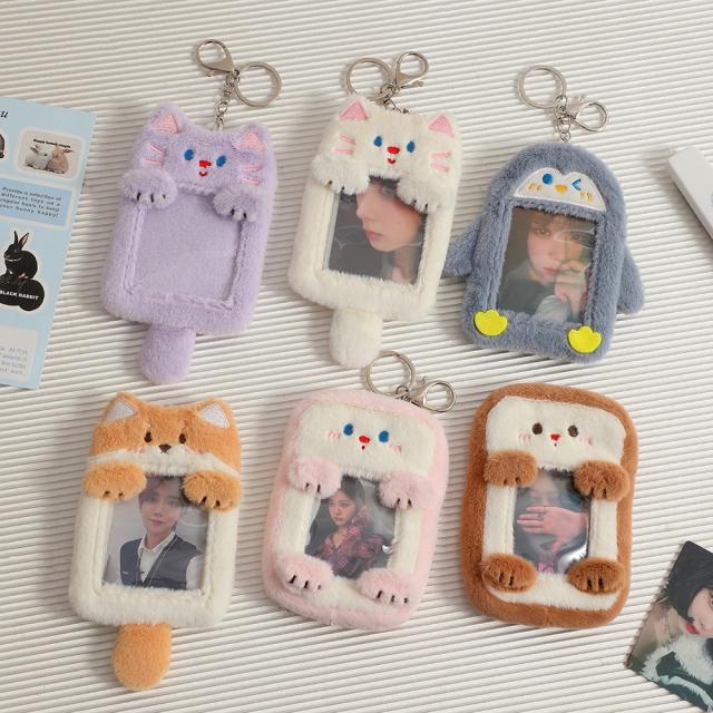 トレカ カバー ふわふわ 韓国 オタ活 トレカフォルダー アルバム ポラロイド ミニ 猫 クマ 保護カバー 韓国雑貨 国内発送 カードケース キーホルダー 推し活 韓国アルバム
