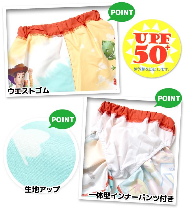 【送料無料】男児 ベビー UVカット サーフパンツ 水着 スイムウェア Disney ディズニー トイストーリー 一体型インナーパンツ付き 男の子 80cm 90cm 95cm iw-1147【メール便対応】