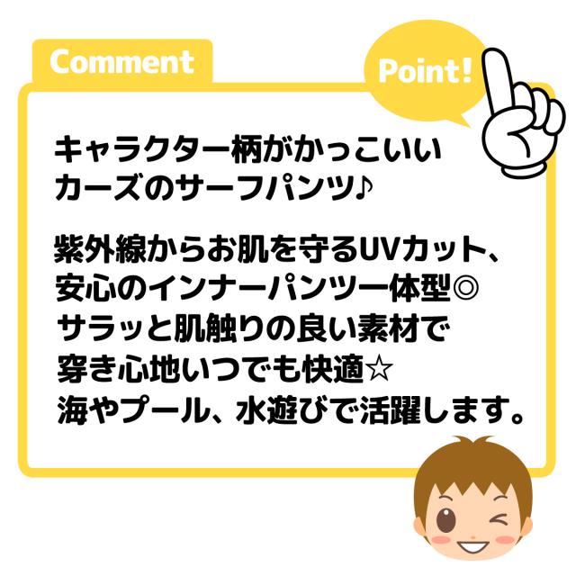 【送料無料】男児 ベビー UVカット サーフパンツ 水着 スイムウェア Disney ディズニー カーズ 一体型インナーパンツ付き 男の子 80cm 90cm 95cm iw-1149【メール便対応】