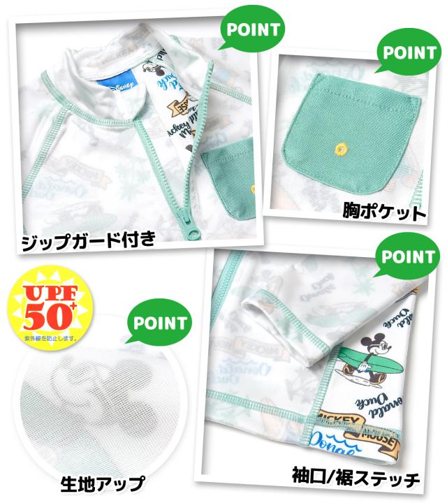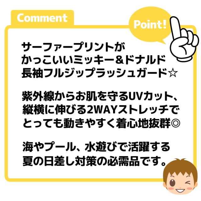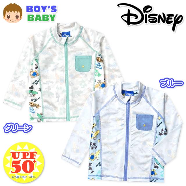 【送料無料】男児 ベビー UVカット 長袖 ラッシュガード Disney ディズニー ミッキー&ドナルド フルジップ 水着 スイムウェア 2WAYストレッチ 伸縮性 男の子 80cm 90cm 95cm iw-1151【メール便対応】