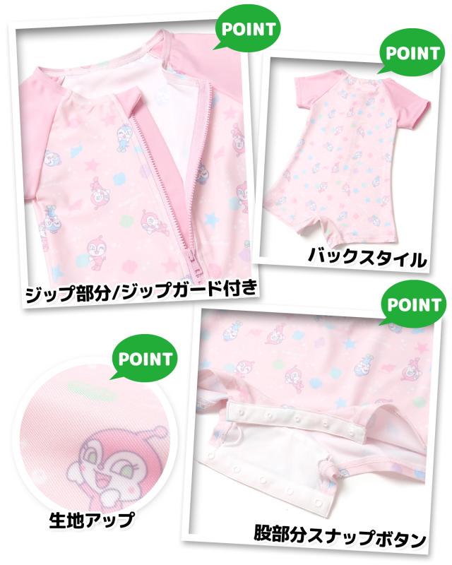 【送料無料】女児 ベビー グレコ水着 アンパンマン スイムウェア 股スナップボタン ストレッチ サマープリント 女の子 80cm 90cm 95cm iw-1120a-pk【メール便対応】