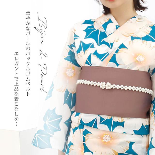 飾り紐 パール ゴムベルト 浴衣 着物 帯締め 帯留め 帯飾り 和装小物 ゆかた 青 ホワイト ワンピース