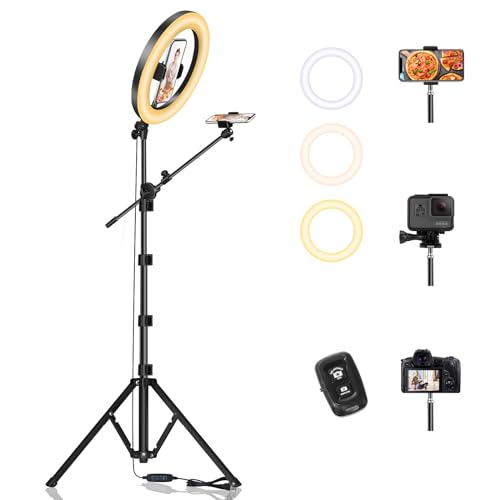 ・?2024年最新・三脚式俯瞰撮影ライト俯瞰撮影用リングライトはロングアームが装備されて自由なアングルで撮影できます。料理、絵画、手芸など場合に俯瞰撮影、手元撮影、真上から動画や写真を撮影する際に、クリアで影が映らない高品質な映像を得ることができます。YouTube、TikTokなどソーシャルメディアに配信用の写真や動画を撮影にの最適的な照明 撮影用ライトです。