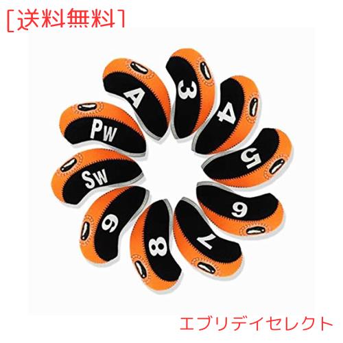 【TSUCIA】アイアンカバー ゴルフ 番手付 ヘッドカバー 10枚セット (ネービー&ブラック)