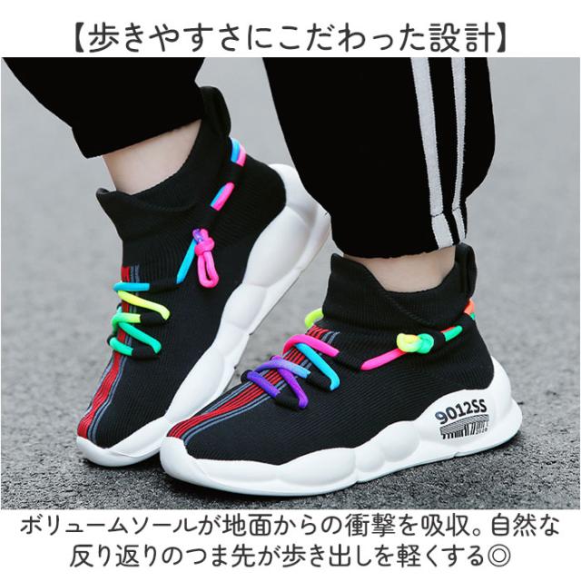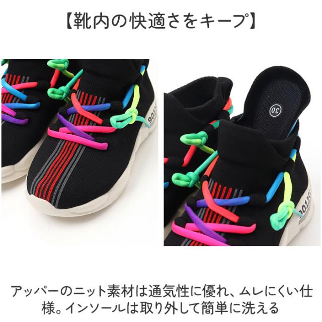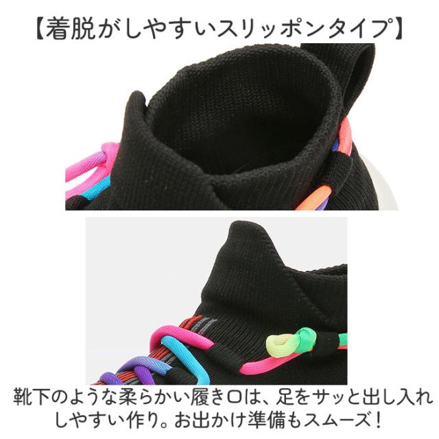 | 商品説明 | 【足にフィットするスリッポンタイプ】 ・元気なお子様にぴったりのレインボーカラー☆「キッズシューズ」が登場。 【グンと伸びる履き心地が魅力】 ・ストレッチ性に優れたソフトなニット素材を使用。足のカタチに合わせて優しくフィットする。 【着脱がしやすいスリッポンタイプ】 ・靴下のような柔らかい履き口は、足をサッと出し入れしやすい作り。お出かけ準備もスムーズ! 【歩きやすさにこだわった設計】 ・ボリュームソールが地面からの衝撃を吸収。自然な反り返りのつま先が歩き出しを軽くする◎ 【靴内の快適さをキープ】 ・アッパーのニット素材は通気性に優れ、ムレにくい仕様。インソールは取り外して簡単に洗える 【滑りにくく頑丈なアウトソール】 ・アクティブな動きにも対応できる、安定したグリップ力。雨の日も安心の滑りにくい作り。 【元気なレインボーカラーがおしゃれ】 ・ファッションのアクセントになる、レインボーカラーの紐をプラス。男の子も女の子もOK☆ |