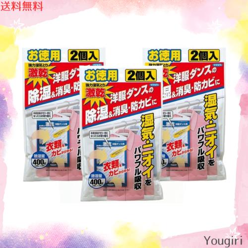 ◆商品名:【まとめ買い】フマキラー 激乾 洋服ダンス用 除湿剤 強力湿気取り 消臭 防カビ対策 徳用 2個入 × 3個