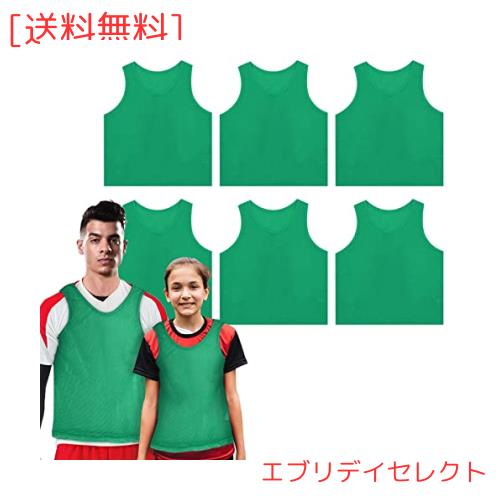 [TOEPODO] ビブス 6枚 子供 ビブス 無地 ビブス バスケ サッカー 10色 吸汗 軽量 良通気 男女兼用 運動会 練習試合 (草の緑)