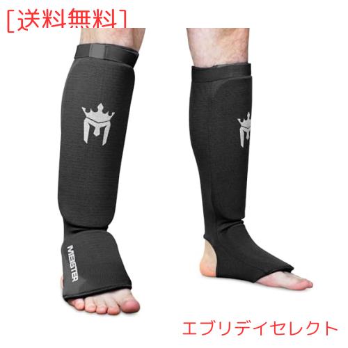 MMA キックボクシング 正規品 Meister レガース エラスティックパッド レッグガード(ペア) - 黒 - 子供サイズ/X-Small