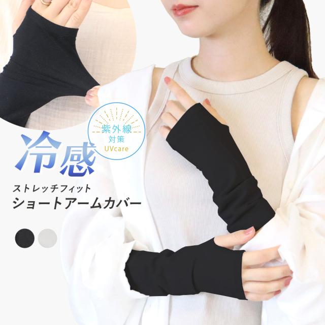 アームカバー ショート丈 接触冷感 UVケア 指穴付き フィットタイプ ストレッチ 日焼け対策 *1-3t *2-9t *y3-12t